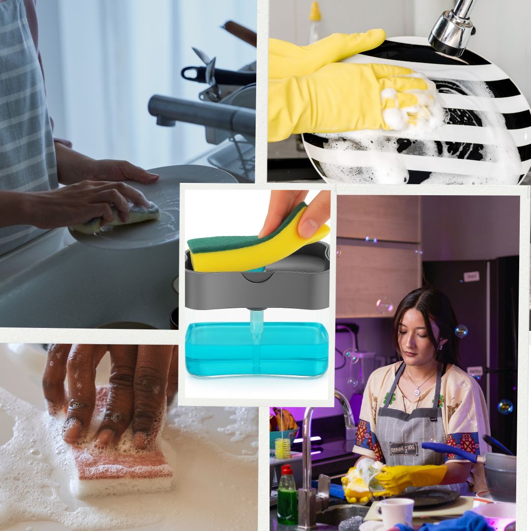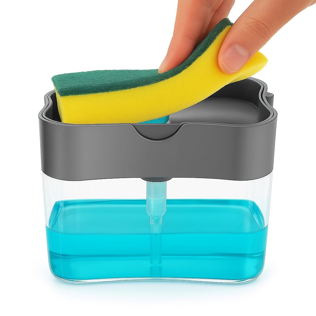 AMPIXI 2-in-1 Soap Dispenser for Kitchen and Sponge Holder – 300ml Dish Soap Dispenser Kitchen Bottle