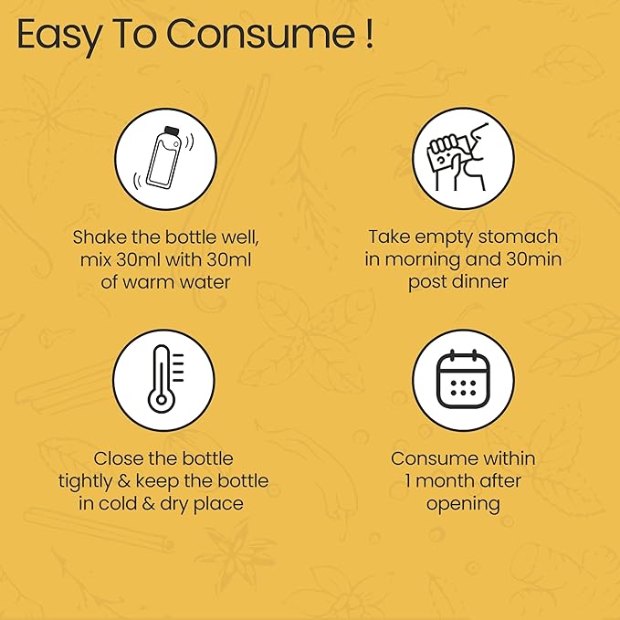 - Serving Recommendation: Shake Well Before Use, Mix 30 ml pf Juice with 30ml of warm water, Take empty stomach in the morning and 30 min post dinner | All-Natural Ingredients: Free from artificial additives & preservatives